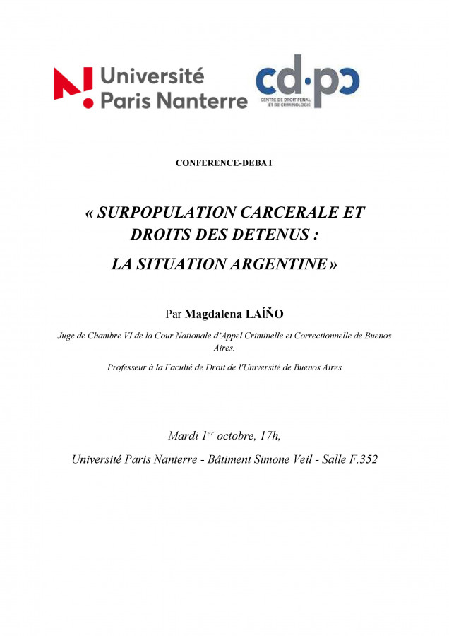 17h00 : Intervention de Magdalena Laiño, Juge de Chambre VI de la Cour Nationale d’Appel Criminelle et Correctionnelle de Buenos Aires, Professeur à la Faculté de Droit de l'Université de Buenos Aires