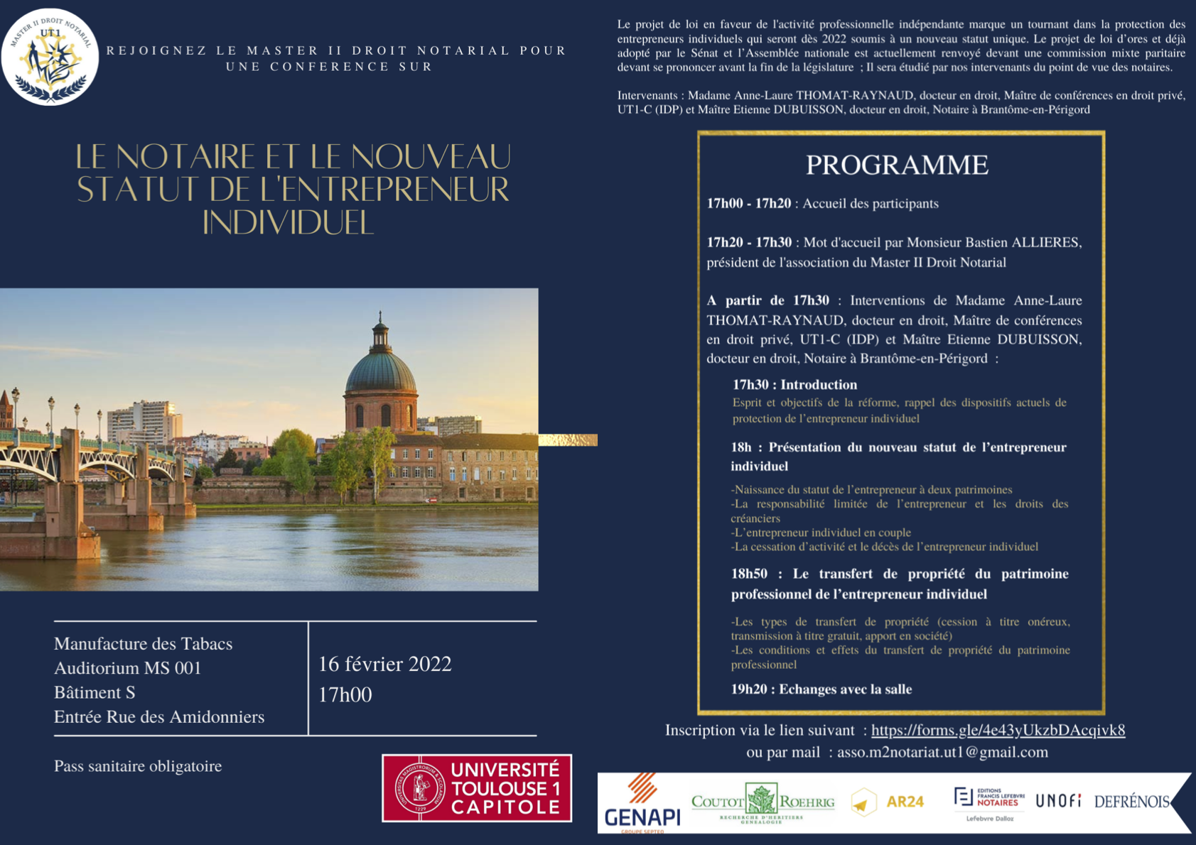 Organisée à l'initiative de l'association du Master 2 Droit Notarial de l'Université Toulouse Capitole