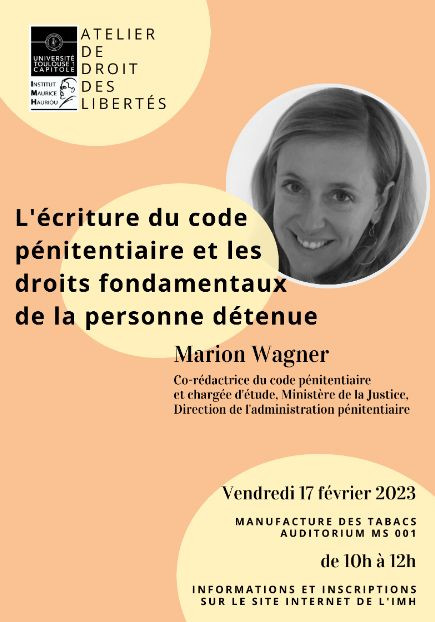 Inscription en bas de page : Université Toulouse 1 Capitole - L'écriture du code pénitentiaire et les droits fondamentaux de la personnes détenue - conférence IMH (ut-capitole.fr)