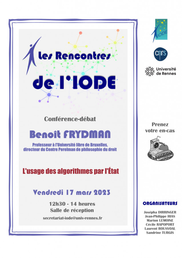 Nous aurons ainsi le plaisir d'accueillir M. Benoît Frydman, professeur à l'Université libre de Bruxelles, directeur du Centre Perelman de philosophie du droit, le vendredi 17 mars, de 12h30 à 14h, salle de réception, Faculté de droit et de science politique de Rennes.
