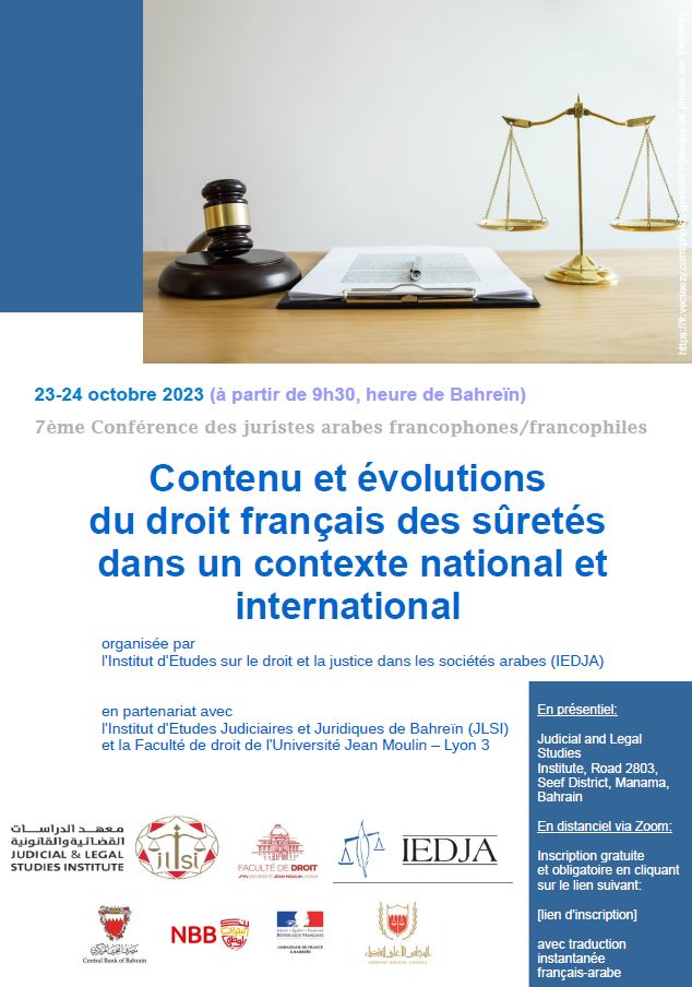 7ème conférence des juristes arabes francophones/francophiles organisé par l'Institut d'Etudes sur le droit et la justice dans les sociétés arabes (IEDJA)