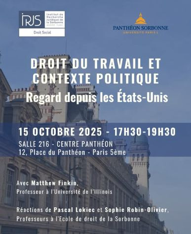 Inscription : https://irjs.pantheonsorbonne.fr/inscription-conference-droit-travail-et-politique-15102025