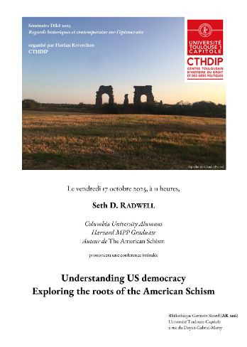 Seth Radwell propose, depuis l’époque des Pères fondateurs jusqu’à nos jours, une analyse historique de la situation politique américaine actuelle, partagée entre deux tendances semblant irréconciliables. Il en fait remonter l’origine aux contradictions inhérentes à l’influence conjuguée des Lumières modérées et des Lumières radicales outre-Atlantique. Seth Radwell nous fera profiter de son excellente connaissance des milieux politiques américains, mais aussi de la France, pour éclairer les évolutions actuelles du débat politique aux États-Unis.