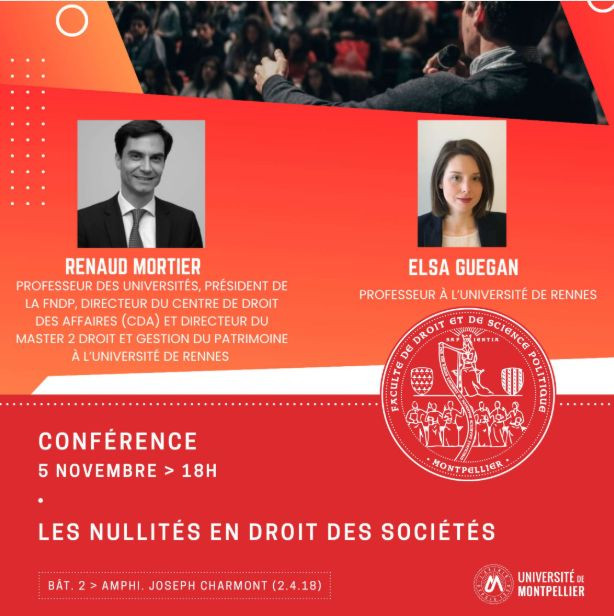 Conférence organisée par le master Droit et Fiscalité du Patrimoine, Faculté de droit, Université de Montpellier