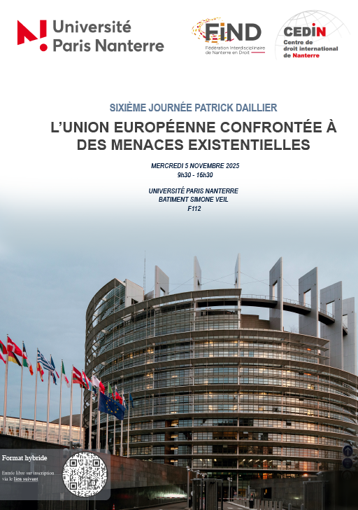 6ème Journée Patrick Daillier organisée par le CEDIN et le FIND, Université paris Nanterre sous la direction scientifique de Bachir Salifou Garba, Firas Kondakji et Olivier Pedeboy