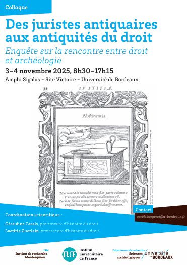 Colloque organisé par le département de recherche Sciences archéologie, Université de Bordeaux, L’IUF et l’IRM Bordeaux sous la direction scientifique de Géraldine Cazals, Professeure d'histoire du droit et Laetitia Guerlain, Professeure d'histoire du droit