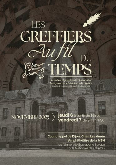 Colloque organisé par l'AFHJ, le CREDESPO, Université de Bourgogne-Europe, la Cour d’appel de Dijon, l’École nationale des greffes, le Barreau de Dijon, les Archives départementales de la Côte d’Or, Direction Interrégionale des Services Pénitentiaires et le Conseil National des greffiers des tribunaux de commerce dans le cadre des journées régionales d’Histoire de la Justice sous la direction de Marie-Clotilde Lault