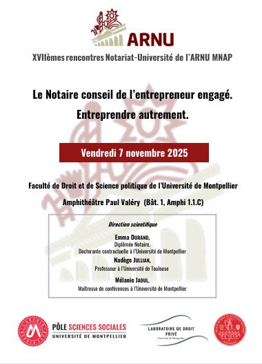 Colloque organisé par la Faculté de droit, Université de Montpellier sous la direction scientifique d'Emma Durand, Diplômée Notaire, Doctorante contractuelle - Université de Montpellier ; Nadège Jullian, Professeur - Université de Toulouse et Mélanie Jaoul, MCF - Université de Montpellier