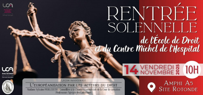 10h00 : Leçon inaugurale de rentrée solennelle 2025 du Centre Michel de L'Hospital et de l'École de Droit