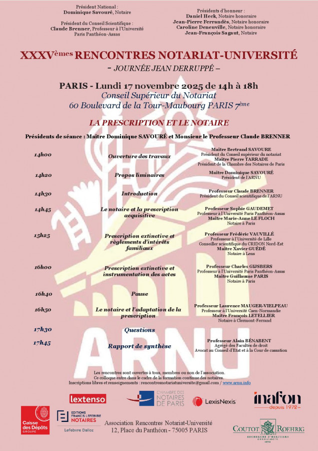 XXXVe Rencontres Notariat-Université organisée par l’Association Rencontres Notariat-Université - ARNU avec le Cabinet Defrenois