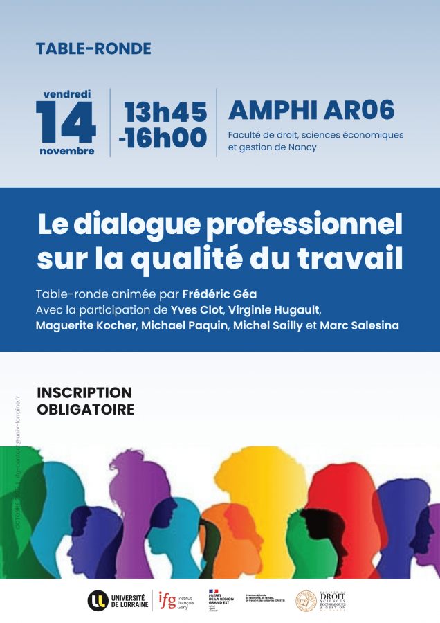 Cette présentation sera suivie d'un débat en perspective pluridisciplinaire, sinon pluraliste, avec les participants à la table-ronde ainsi qu'avec l'auditoire. Seront les bienvenus l'ensemble des acteurs (du dialogue social, du travail et du droit du travail) intéressés par le sujet.