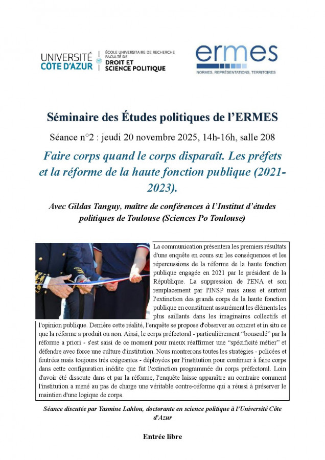 Séminaire des études politiques-séance 2 organisée par l'ERMES, Université Nice Côte d'Azur