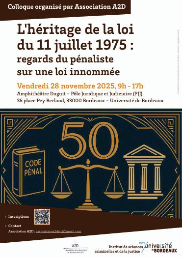 Colloque organisé par A2D, l'association des doctorants de l'ISCJ et les master 2 (Contentieux judiciaire, Droit économique répressif, Droit pénal approfondi, Droit pénal européen et international), Université de Bordeaux