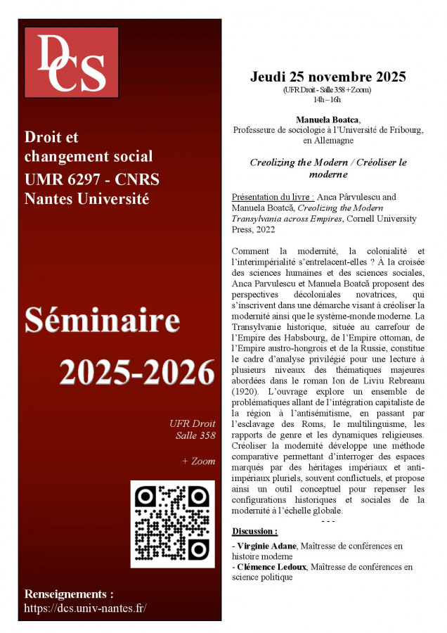 Séance du Séminaire général 2026-2026 de l'UMR Droit et changement social, Nantes Université - CNRS.