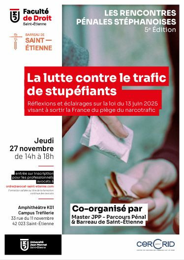 5èmes Rencontres Pénales stéphanoises organisées par la Faculté de Droit de Saint-Etienne dans le cadre du Master Justice Procès Procédures, et le Barreau de Saint-Etienne, en collaboration avec le CERCRID (UMR 5137), Université de st Etienne sous la direction scientifique de Djoheur Zerouki et Elise Letouzey, MCF en Droit pénal à l'Université Jean Monnet Saint-Etienne, Directrices du Master Justice, Procès et Procédures - Parcours Pénal de la Faculté de Droit de Saint-Etienne