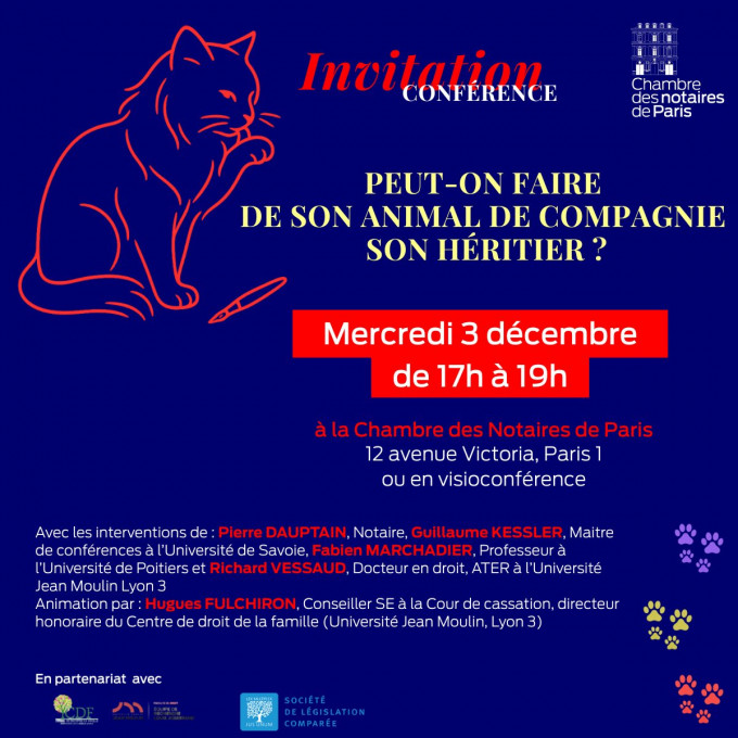 Conférence organisée par le Centre de droit de la famille, Université Jean Moulin, Lyon 3 dans le cadre du cycle "La famille de l’animal", en association avec la Société de Législation Comparée - SLC