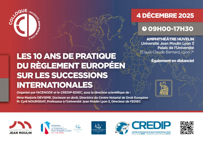 Colloque organisé par l'ACENODE et le CREDIP-EDIEC, faculté de droit, Université Lyon 3 sous la direction scientifique de Mme Marjorie Devisme, Docteure en droit, Directrice du Centre notarial de droit européen et M. Cyril Nourissat, Professeur de droit privé, Directeur de l'EDIEC, Université Jean Moulin Lyon 3