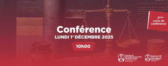 Conférence organisée par le Centre de recherche en droit Antoine Favre, Université Savoie Mont Blanc dans le cadre du projet de recherche "Regards croisés sur le Droit de la responsabilité – Divergences, convergences et complémentarité de la responsabilité civile, administrative et internationale dans le droit contemporain" sous la coordination scientifique de Claire Portier