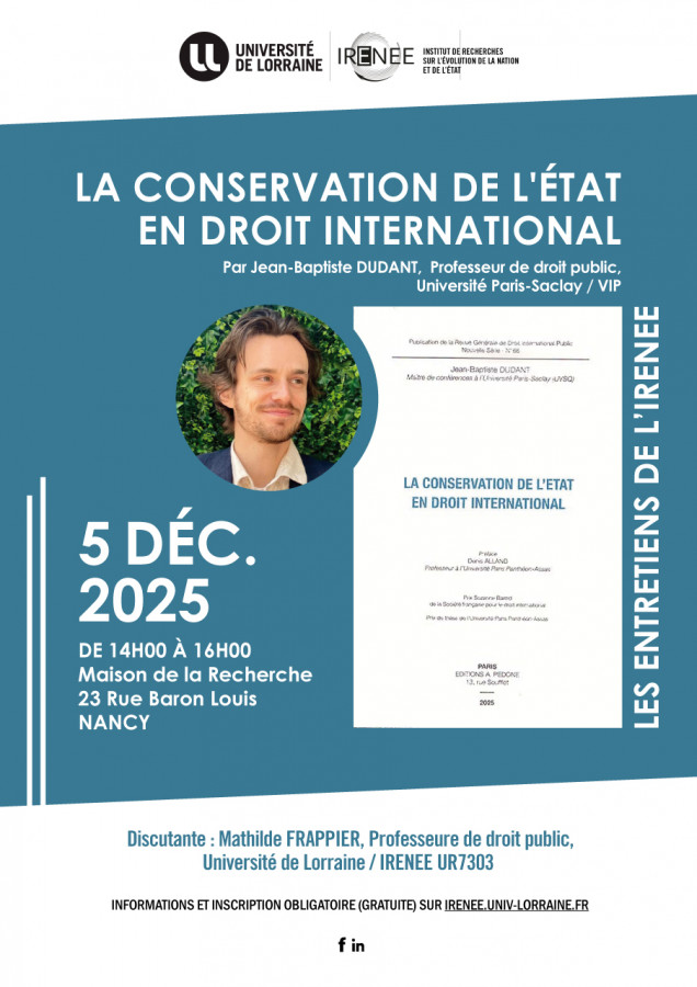 Inscription obligatoire : irenee-contact@univ-lorraine.fr