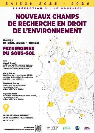 Conférence organisée par l’IEDP, l’ESE et le CNRS et la MSH, Université Paris-Saclay, dans le cadre du cycle "Nouveaux champs de recherche en droit de l'environnement - Raréfaction 3 : le sous-sol.