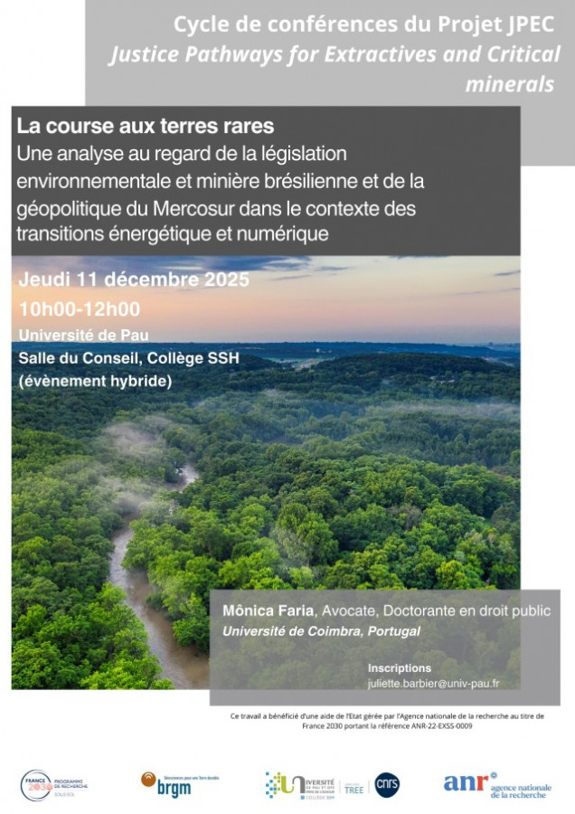 Séminaire organisé par l'Université de Pau et Pays de l'Adour dans le cadre du cycle de conférences du projet JPEC "Justice pathways for extractives and critical minerals"