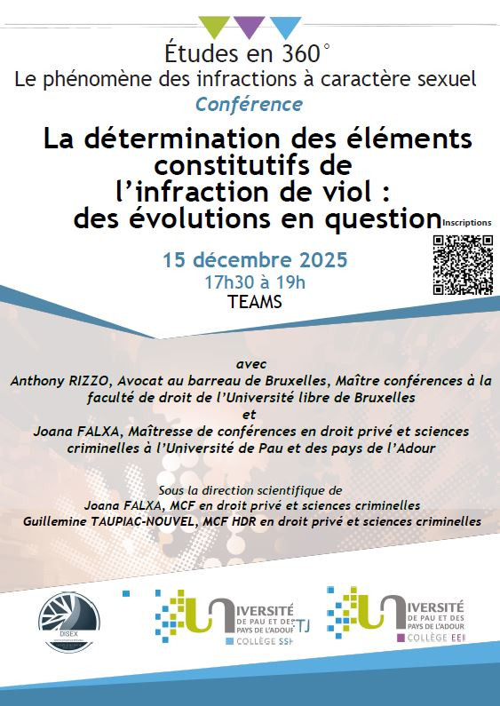 Conférence organisée par l'IFTJ, Université de Pau et Pays de l'Adour dans le cadre du cycle "Études en 360°" sous la direction scientifique de Joana Falxa, MCF en droit privé et sciences criminelles et Guillemine Taupiac-Nouvel, MCF HDR en droit privé et sciences criminelles