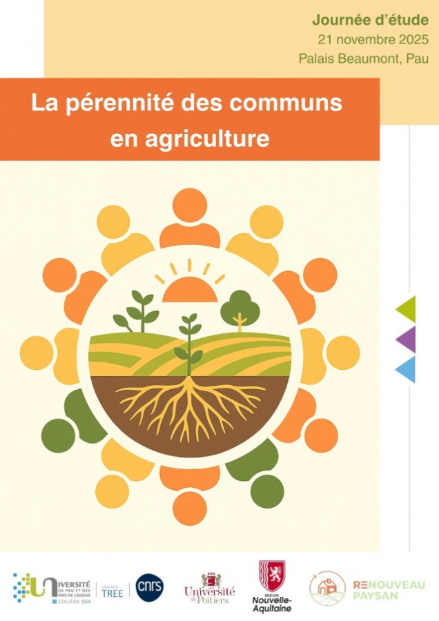 Le colloque "La pérennité des communs en agriculture" s’inscrit en clôture du projet FARM (La Ferme, écosystème innovant d’hAbitat, de vie et de pRoduction agricole territorialisée pour deMain) financé par la Région Nouvelle-Aquitaine depuis 2021. Il propose de croiser les regards des sciences juridiques et sociales et de la pratique autour des communs en agriculture.