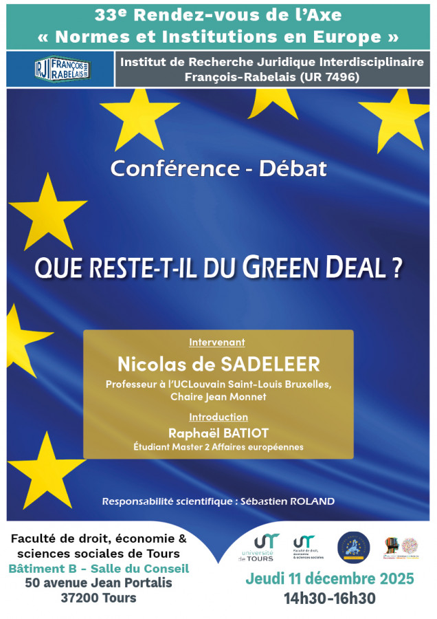Conférence organisée par l'IRJI, Faculté de droit, Université de Tours dans le cadre du 33ème Rendez-vous de l'Axe "Normes et Institutions en Europe" sous la responsabilité scientifique de Sébastien Roland