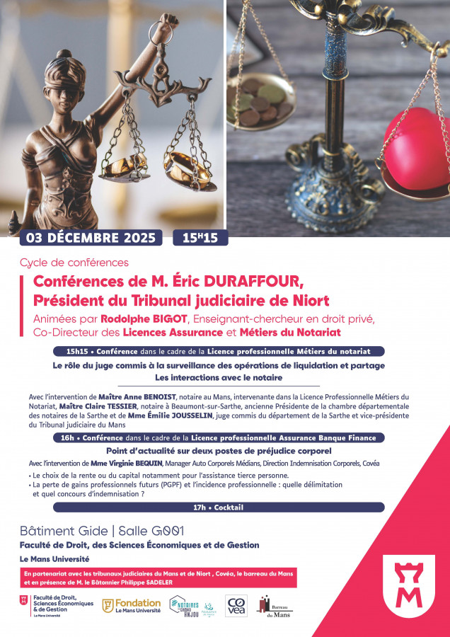 15h15 : Conférence dans le cadre de la Licence Professionnelle Métiers du notariat