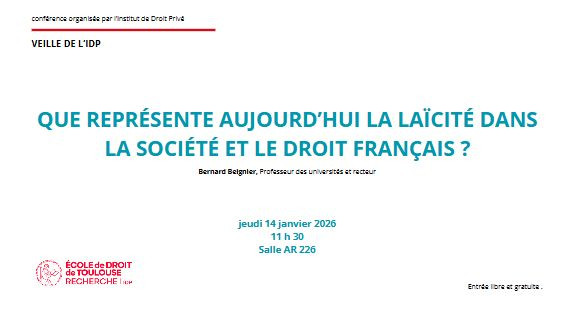 Conférence organisée par l’Institut de Droit Privé, Ecole de droit, Université Toulouse Capitole dans le cadre de la "Veille de l'IDP"