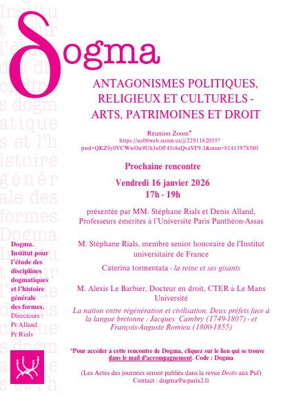Conférence organisée par le DOGMA, l'Institut pour l'étude des disciplines dogmatiques et l'histoire générale des formes, Université Paris Panthéon-Assas
