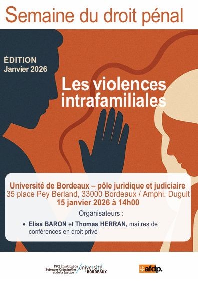 Journée d'étude organisée par l'Université de Bordeaux sous la direction scientifique d'Elisa Baron et Thomas Herran, Maîtres de conférences en droit privé et sciences criminelles