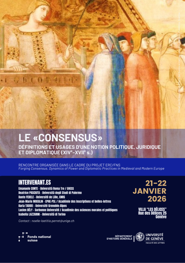 Rencontre organisée dans le cadre du projet ERC/FNS : Forging Consensus. Dynamics of Power and Diplomatic Practices in Medieval and Modern Europe.