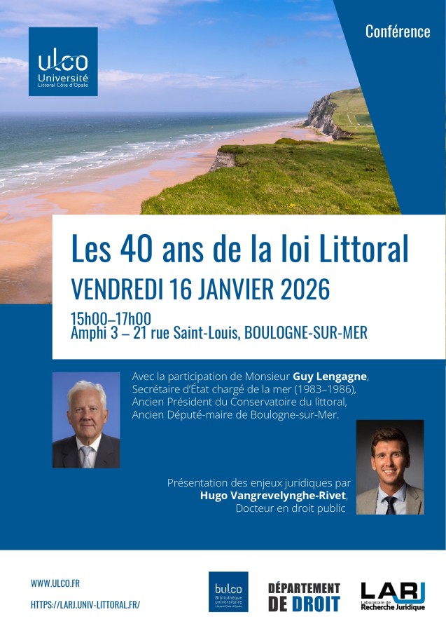 Conférence organisée par le LARJ, Université du Littoral - Côte d'Opale sous la direction scientifique d'Hugo Vangrevelynghe-Rivet, Docteur en droit public et membre du LARJ