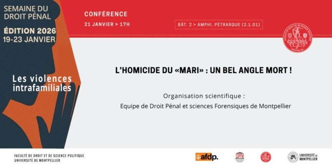 Conférence organisée par l'Équipe de Droit Pénal et sciences Forensiques, Faculté de droit, Université de Montpellier avec l'AFDP dans le cadre du Séminaire "Les violences intrafamiliales"