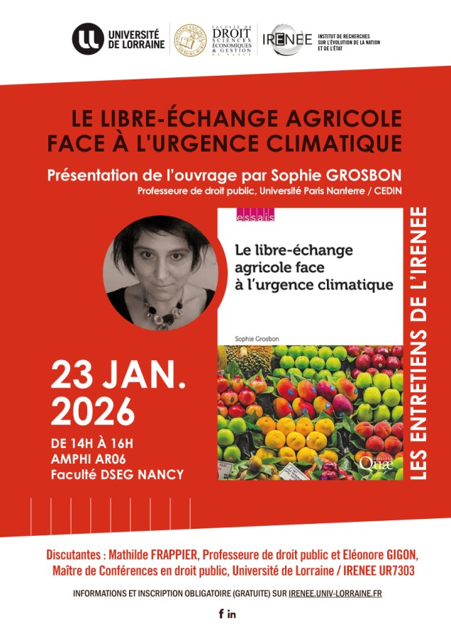Conférence organisée par l'IRENEE, Faculté de droit, Université de Lorraine