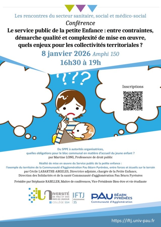 Inscription gratuite mais obligatoire en bas de page : https://iftj.univ-pau.fr/fr/vie-de-l-institut/conferences/conferences-25-26/les-rencontres-du-secteur-sanitaire-social-et-medico-social-4.html