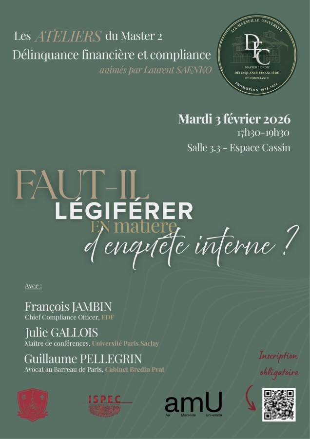 Troisième opus des Ateliers du Master 2 Délinquance financière et compliance de l’Université d’Aix-Marseille.