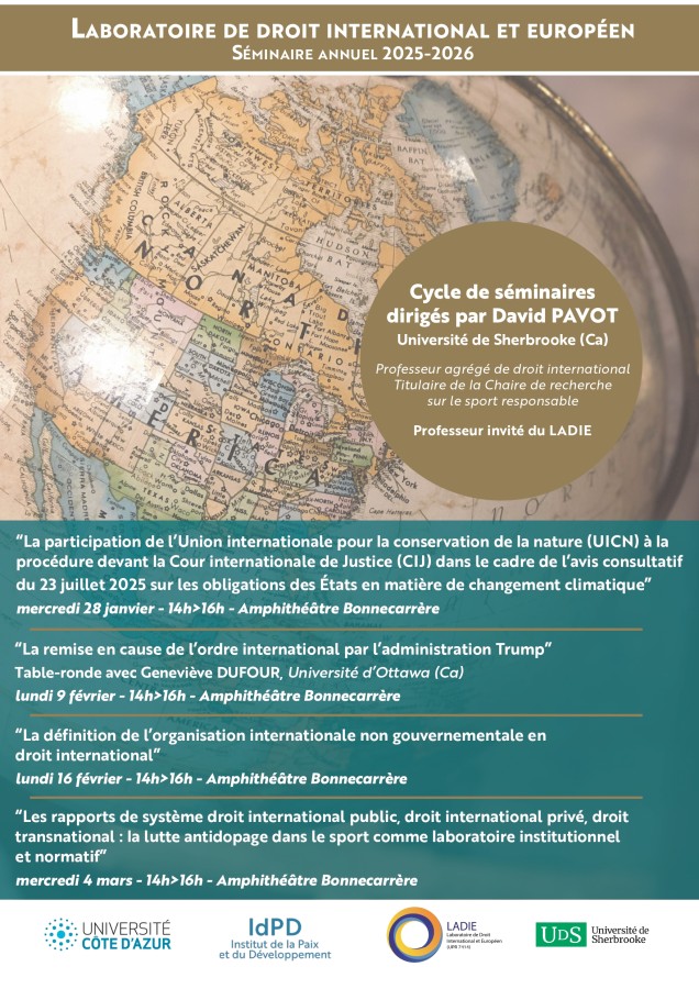 Cycle organisé par le LADIE, l’IDPD, la Faculté de droit, Université Côte d'Azur et l’Université de Sherbrooke