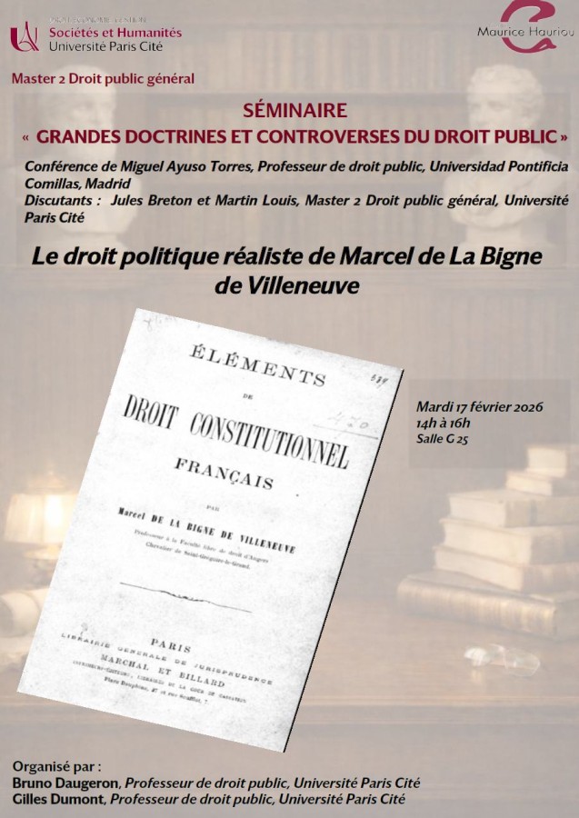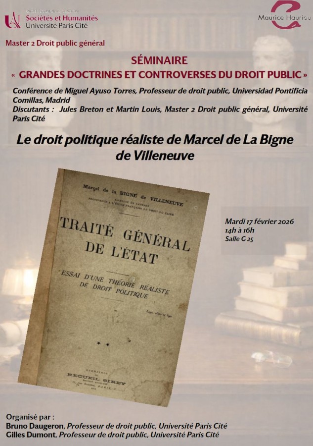 Conférence organisée dans le cadre du séminaire de Grandes doctrines et controverses du droit public du Master 2 Droit public général, sous la direction des Pr. Bruno Daugeron et Gilles Dumont.