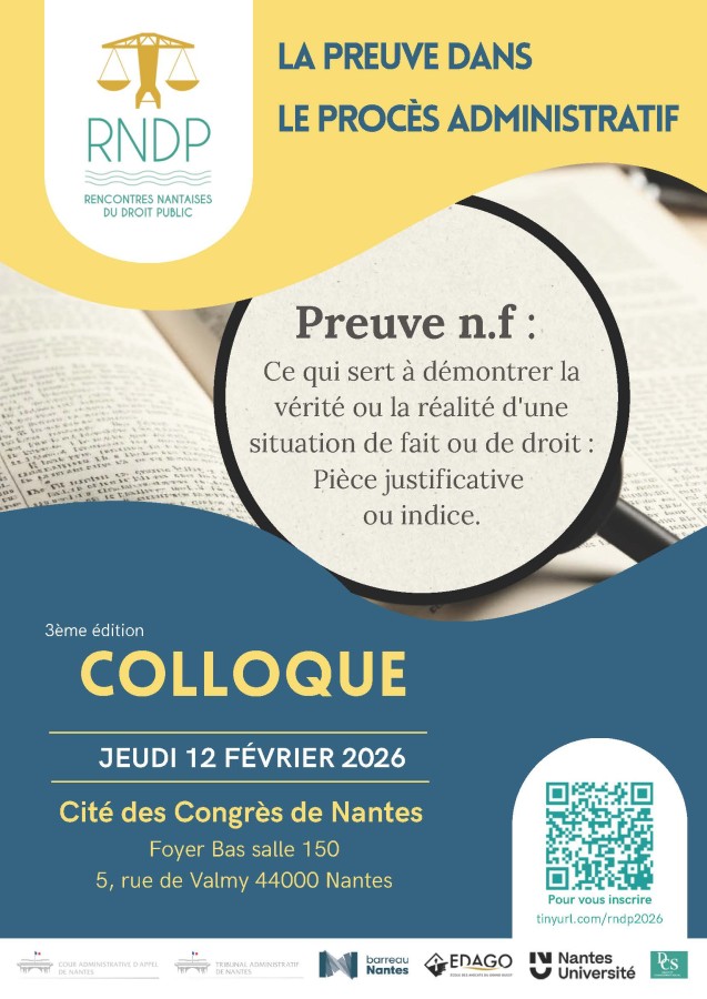 3ème édition des Rencontres Nantaises du Droit public, organisées par la Cour administrative d'appel de Nantes, le Tribunal administratif de Nantes, le Barreau de Nantes, l’EDAGO et Nantes Université.