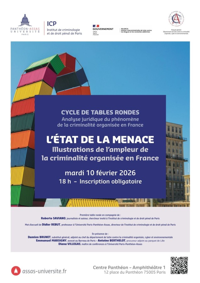 Table ronde organisée par l'Université Paris Panthéon-Assas dans le cadre du projet de recherche « Analyse juridique du phénomène de la criminalité organisée en France » avec la MILDECA, la Cour d’appel de Paris et l’ICP