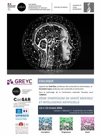 Cette manifestation, réalisée sous le patronage de la Commission française pour l’UNESCO, est coorganisée par Amandine Cayol (professeure de droit privé, ICREJ) et Gaël Dias (professeur en informatique, GREYC) dans le cadre du projet de recherche Mental.AI@CaeSAR financé par l’ANR et la région Normandie.
