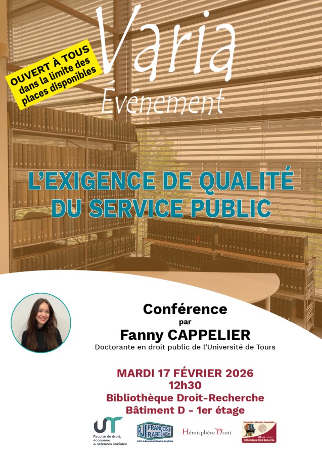 Conférence VARIA organisée par l'IRJI Rabelais, Hémisphère droit, la Faculté de Droit, Université de Tours