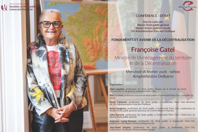 Conférence organisée par la Faculté de Droit, d’Économie et de Gestion de l’Université Paris Cité, dans le cadre des formations du Master Droit public général, du Master Action publique locale et du Diplôme universitaire Administration-Fonction Publique, à l'initiative de M. Marc Le Dorh, professeur associé de droit public, conseiller du Sénat.
