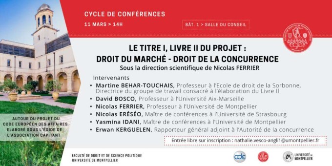 Conférence organisée sous l'égide de l'Association Capitant par le Centre de droit de l'entreprise, Université de Montpellier, sous la direction scientifique de Nicolas Ferrier.