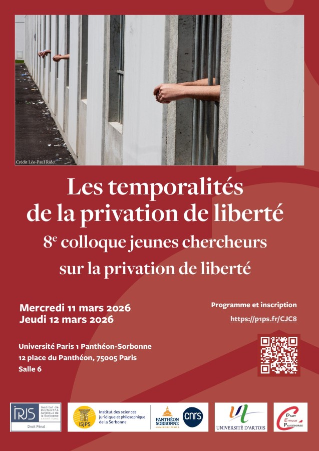 8e colloque jeunes chercheurs sur la privation de liberté, organisé par l'IRJS et l'ISJPS, Université Paris 1 Panthéon-Sorbonne, et le CDEP, Université d'Artois.