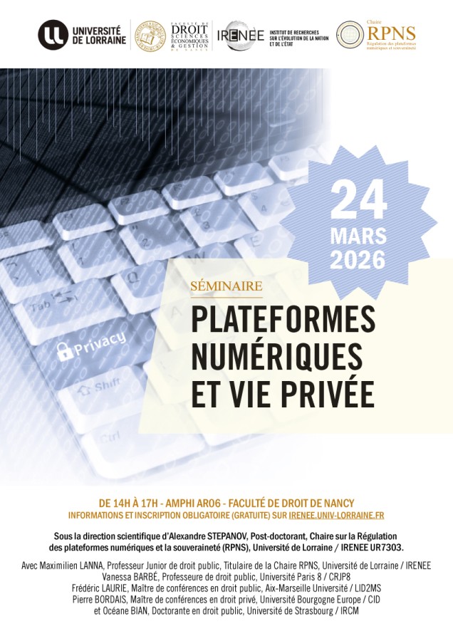 Séminaire Chaire RPNS organisé par l'IRENEE, Faculté de droit, Université de Lorraine sous la direction scientifique d'Alexandre Stepanov, Post-doctorant, Chaire RPNS, Université de Lorraine / IRENEE UR7303