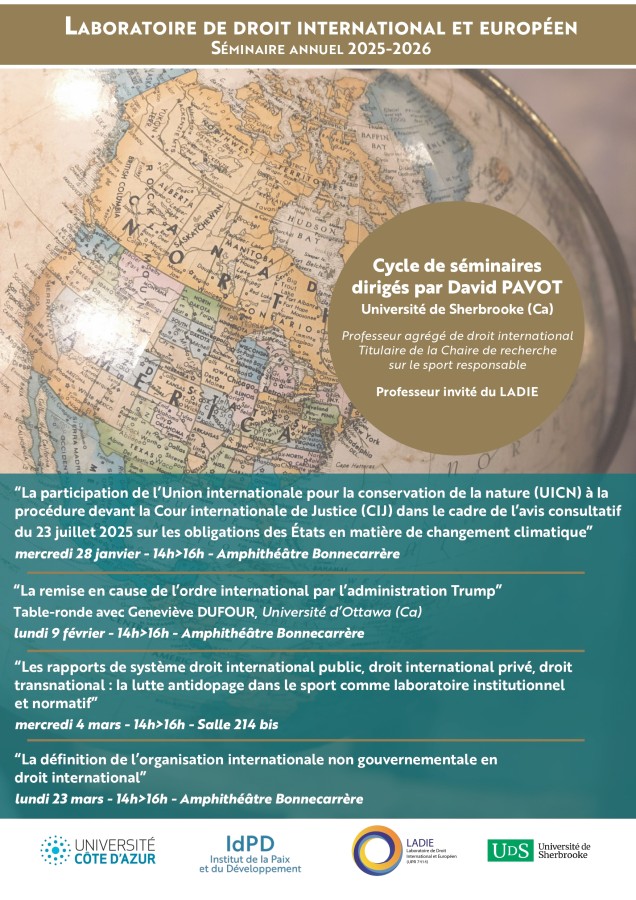 14h00 : Intervention de David Pavot, Professeur agrégé de droit international à l'Université de Sherbrooke (Ca), Professeur invité du LADIE 2026,