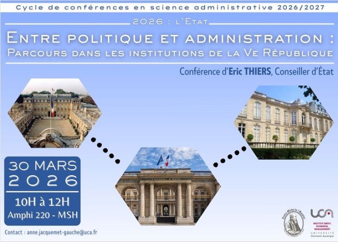 Conférence organisée par le Centre Michel de L'Hospital (CMH) UR 4232, UCA dans le cadre du Cycle de conférences en science administrative 2026/2027 – 2026 : "L'État" sous la coordination d'Anne Jacquemet-Gauché, Professeure de droit public